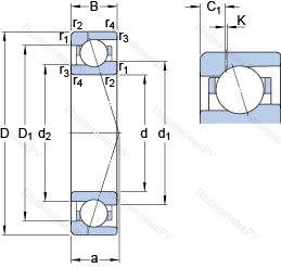 | Номинальная динамическая грузоподъёмность | C | 9.23 | kN | |